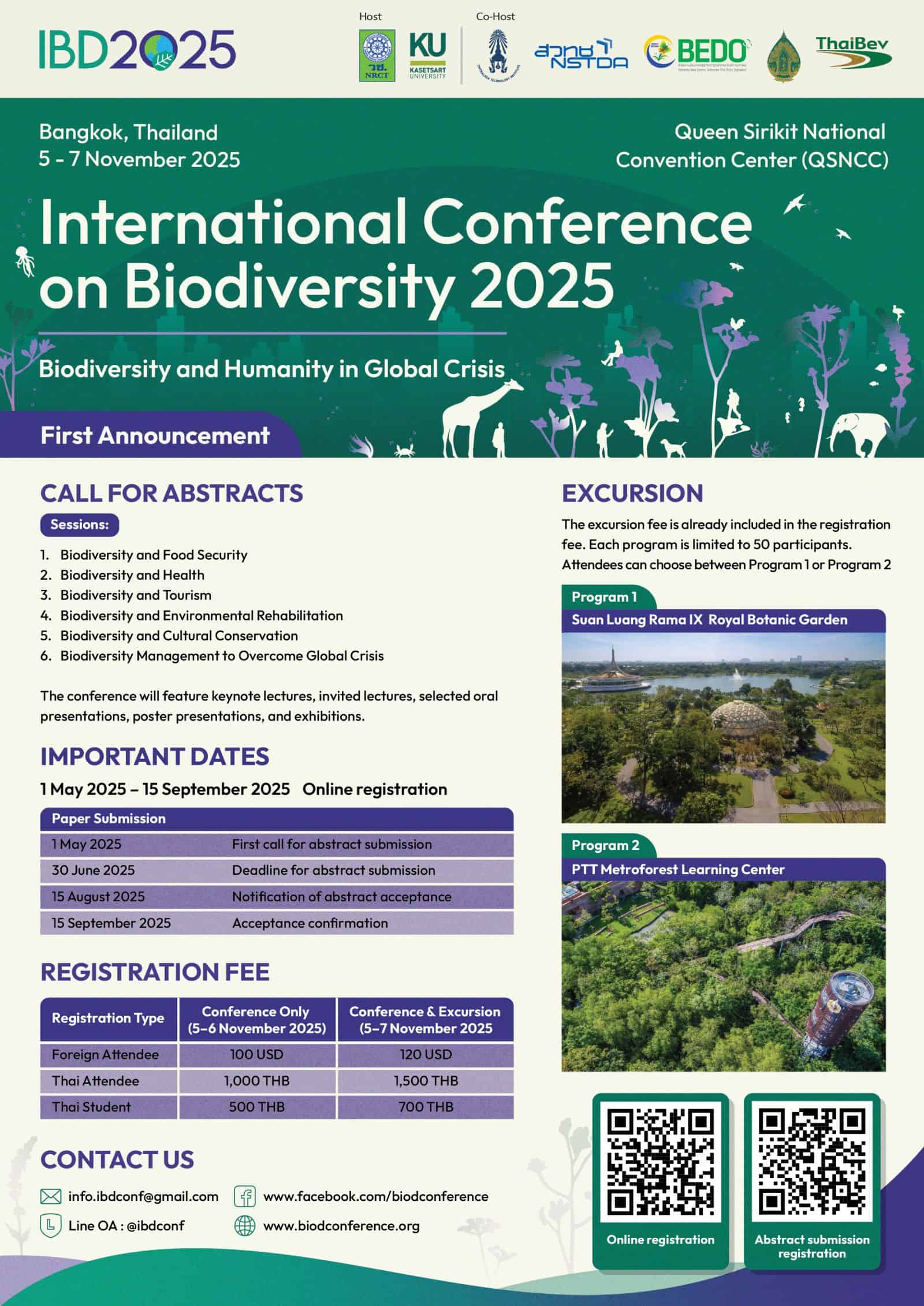 ด้วยเหตุนี้มหาวิทยาลัยเกษตรศาสตร์ ร่วมกับ สำนักงานวิจัยแห่งชาติ และหน่วยงานพันธมิตรด้านความหลากหลายทางชีวภาพของประเทศ ได้แก่ สำนักงานพัฒนาวิทยาศาสตร์และเทคโนโลยีแห่งชาติ สำนักงานพัฒนาเศรษฐกิจจากฐานชีวภาพ (องค์การมหาชน) สถาบันเทคโนโลยีจิตรลดา มูลนิธิสวนหลวง ร.9 จึงกำหนดจัดการประชุมวิชาการนานาชาติ International Conference on Biodiversity: IBD2025 ระหว่างวันที่ 5 – 7 พฤศจิกายน พ.ศ. 2568 ณ ศูนย์การประชุมแห่งชาติสิริกิติ์ กรุงเทพฯ ภายใต้แนวคิดหลัก “ความหลากหลายทางชีวภาพกับมนุษยชาติในยุควิกฤตโลก” (Biodiversity and Humanity in Global Crisis ) ทั้งนี้ เพื่อเป็นการเฉลิมพระเกียรติ สมเด็จพระกนิษฐาธิราชเจ้า กรมสมเด็จพระเทพรัตนราชสุดาฯ สยามบรมราชกุมารี ทรงเจริญพระชนมายุ 70 พรรษา ในปี พ.ศ. 2568 และเป็นเวทีแลกเปลี่ยนเรียนรู้ระหว่างประชาคมนักวิจัยของไทยและต่างประเทศ ด้านความหลากหลายทางชีวภาพในมิติต่าง ๆ ทั้งด้านการอนุรักษ์ การป้องกันการฟื้นฟู และการใช้ประโยชน์ จากความหลากหลายทางชีวภาพ ตลอดจนเพื่อหาแนวทางความร่วมมือในระดับสากล